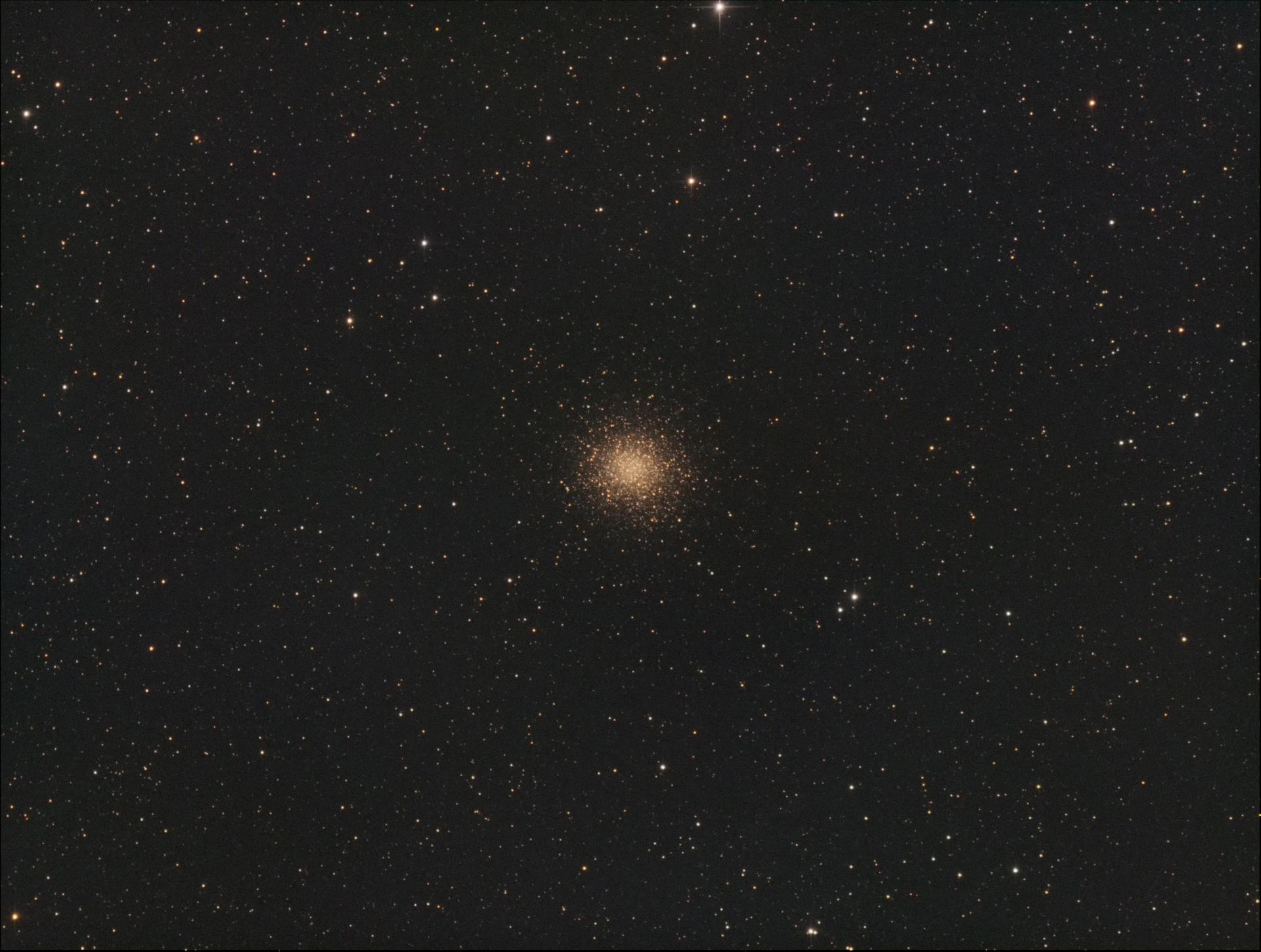 Object: M14 Optic: NON1000 (200/1000mm Newton f5), GPU Corrector Mount: Skywatcher AZ-EQ6 Camera: ZWO ASI 1600MM-C @ -20°C, Gain 75, Offset 15 Filter: ZWO EFW 7x36mm, Baader 36mm Filter Exposure: total 14min, L 4x2min + 3x2min from RGB, R 3x2min, G 2x2min, B 3x2min 327xBias, 48x Darks, 31x Flat(L:R:G:B) Color: LRGB Capture: SGP (Sequencing, Autofocus, Dithering, FlatWizard) Guiding: TS-OAG 9mm, ASI120MM, PHD2 Date/Location: 2017-09-26, Kreben Image Processing: Pixinsight: BatchPreprocessingScript (calibrate only), CosmeticCorrection, StarAlignment, Blink, ImageIntegration, ChannelCombination, ABE for RGB, PhotometricColorCalibration, STF-Stretch for RGB, TGVDenoise for RGB, MaskedStretch for L PS: Levels for RGB, NIK Dfine2 for RGB, Dynamic, Luminance Layer, NIK Define for Background, Levels |